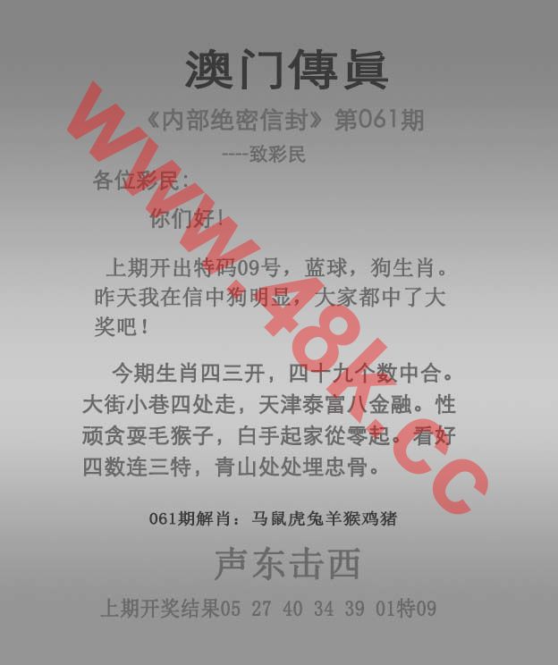 061期: ④肖 狗兔马鸡 ????中