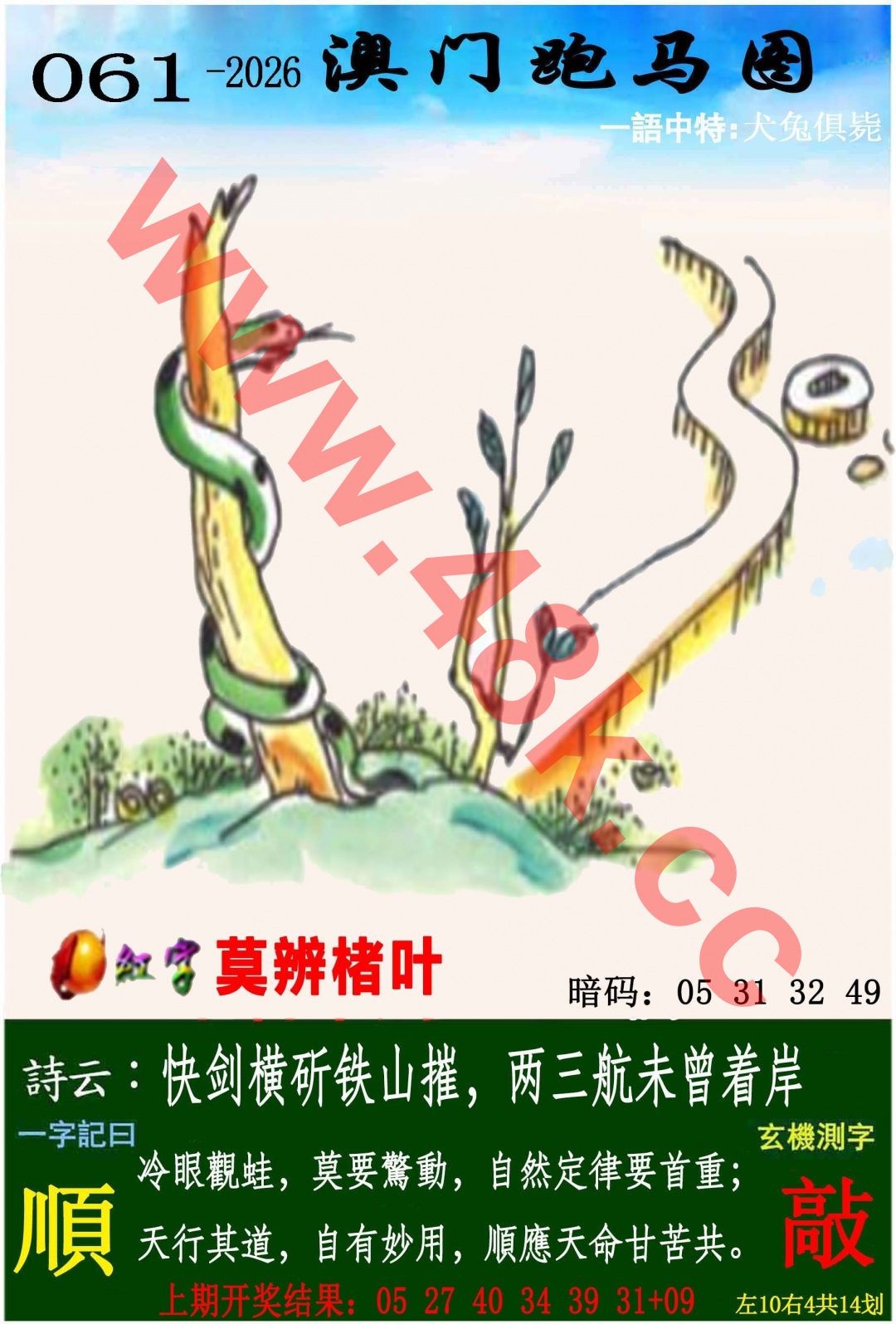 058期: 欲钱解特诗 开:鼠31
